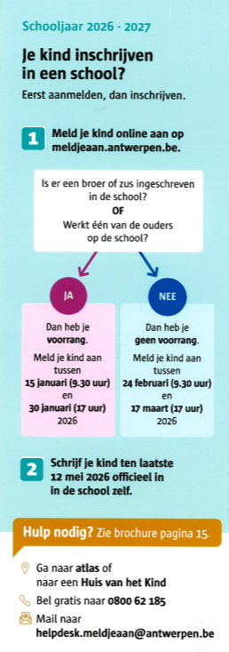 Indien u uw kind wenst in te schrijven dan kan dit in Antwerpen enkel door eerst aan te melden via een centrale website: